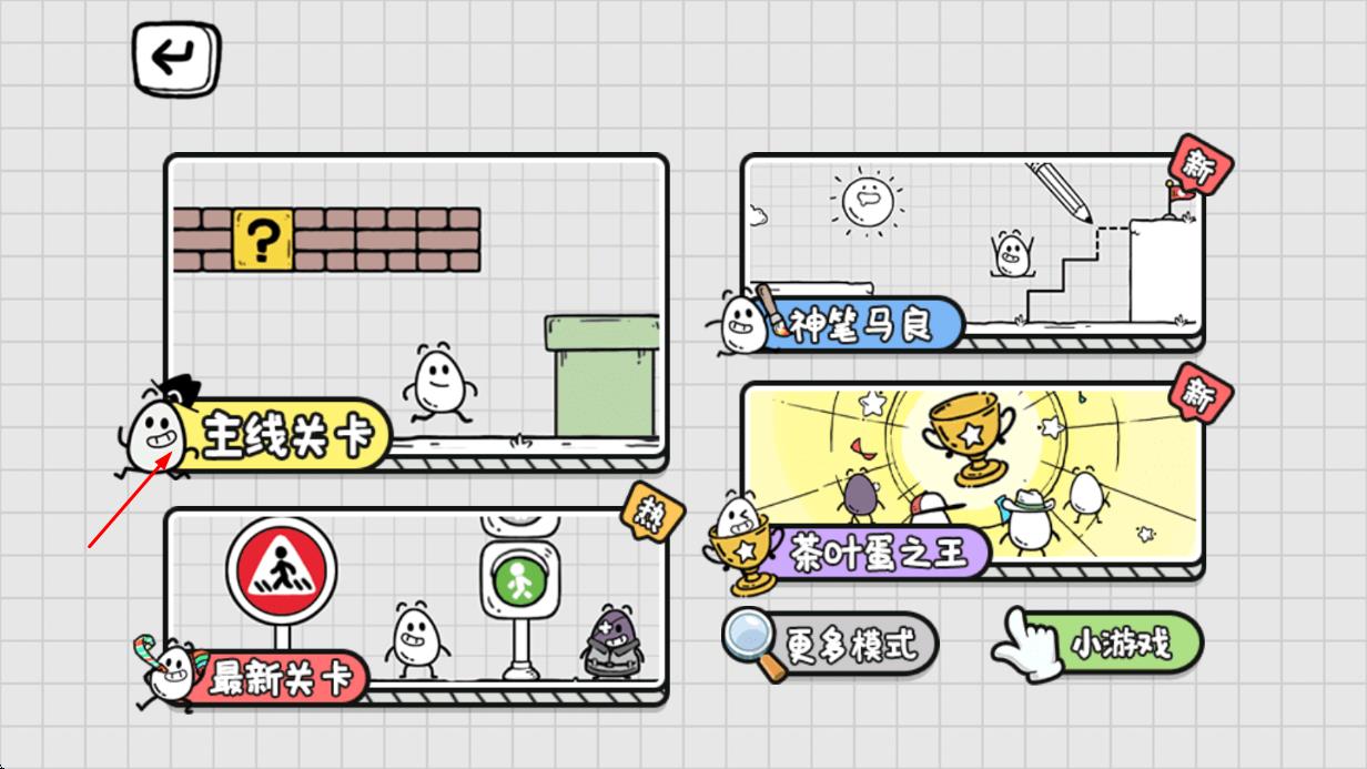 1、进入游戏后选择初始关卡,点击屏幕操控茶叶蛋移动,开始接触基础机关与关卡规则。