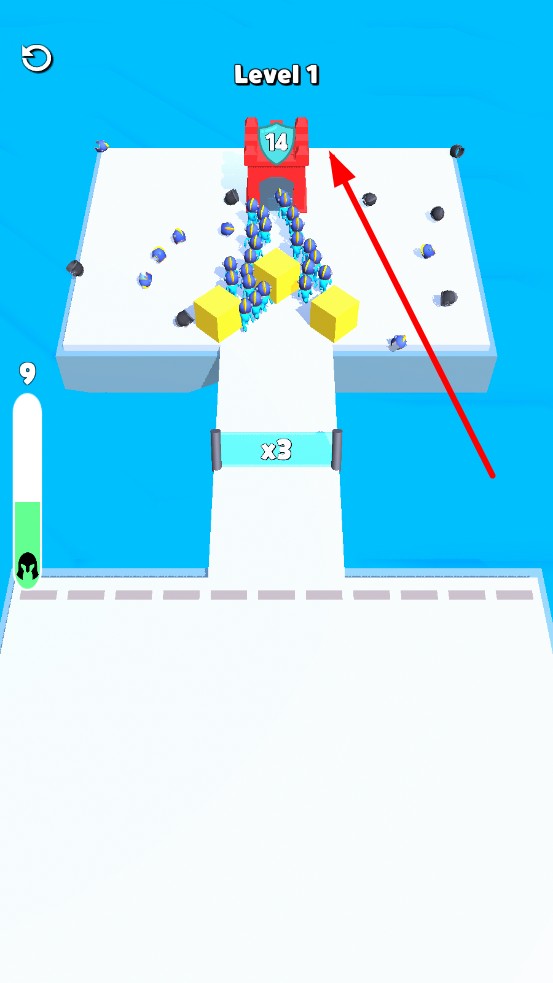 1、兵力滚雪球爽感:开局寥寥数兵,路过倍数门倍增,连续召唤让蓝色军团从小分队膨胀为大军团。冲阵时像推积木般碾碎红色敌人,兵力越滚越猛,极具有解压成就感。