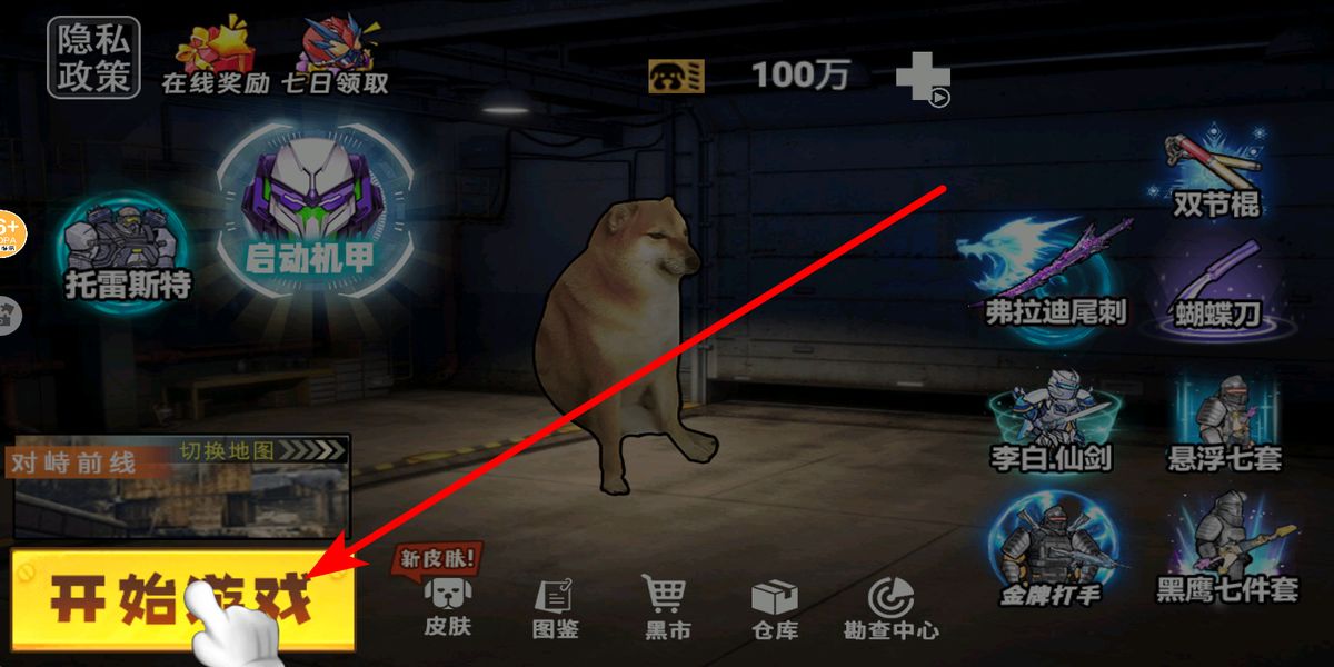 1、主界面点击开始游,选定需要游玩对峙前线等地图,查看皮肤、武器如弗拉迪尾刺,熟悉界面功能,为战场对抗做筹备。