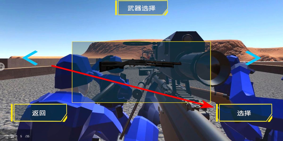 1、进入主界面点击开始游戏,跳转至武器选择页,浏览枪械列表,依据战场需求点击选择,确定参战武器,为对抗储备火力。
