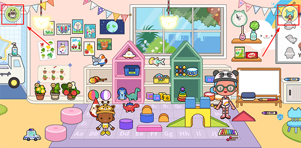 1、进入游戏后,左上角按钮为选择人物,右上角按钮为返回地图;