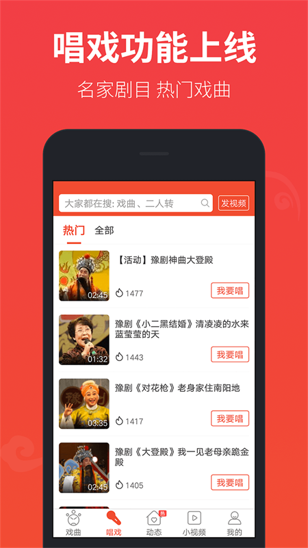 拥有完整的广场舞和戏曲资源,包括京剧、豫剧、二人转、黄梅戏等。