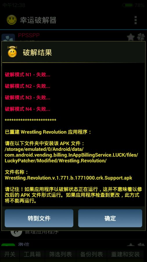 5. 等出来竟然失败,不要灰心其实它已经破解成功了!点击【转到文件】