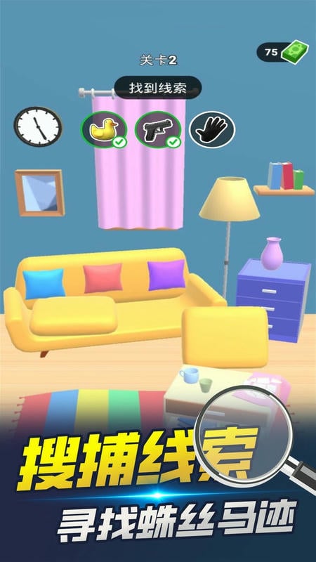3、轻松侦探氛围:卡通画风与简洁界面降低了案件的沉重感,玩家可在休闲节奏中专注于证据搜集与推理体验到感受细致烧脑的侦探体验。