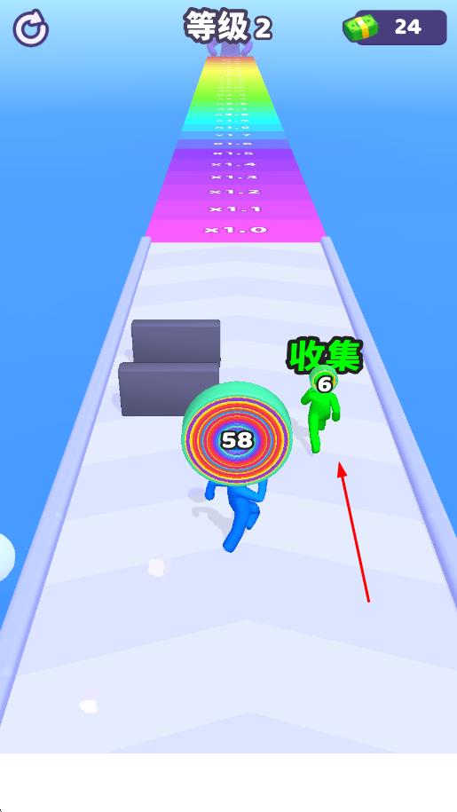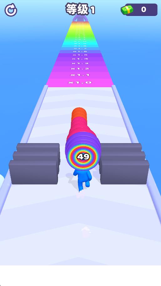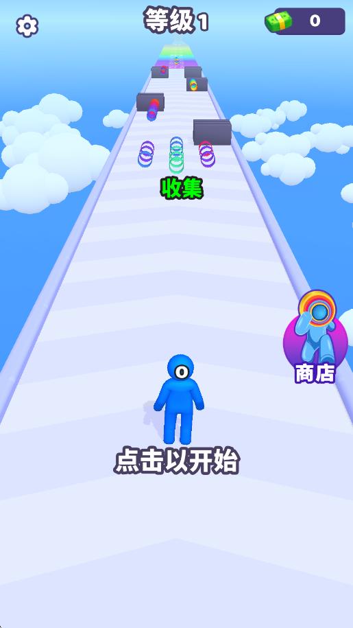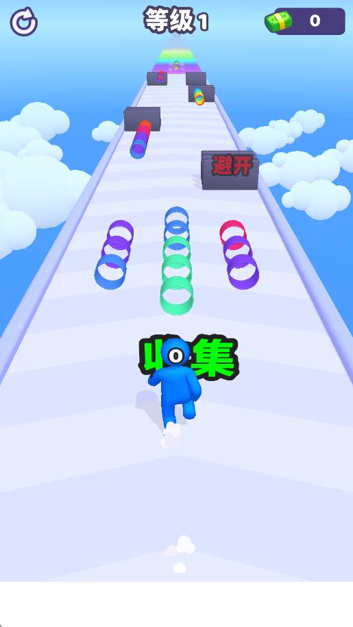 2、奖励解锁丰富:积累得分可解锁不同风格的角色皮肤、跑酷特效,部分奖励还能提升叠圈收集效率,激励玩家持续闯关积累分数。