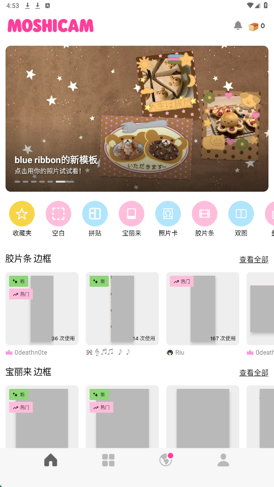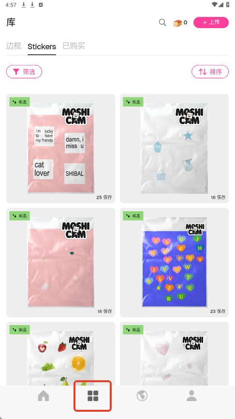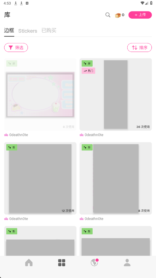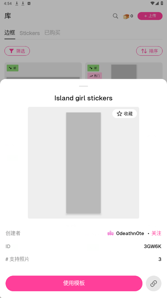 2.第二个板块可以查看贴纸、边框模板,以及已购的模板