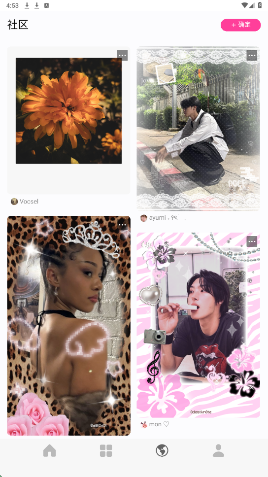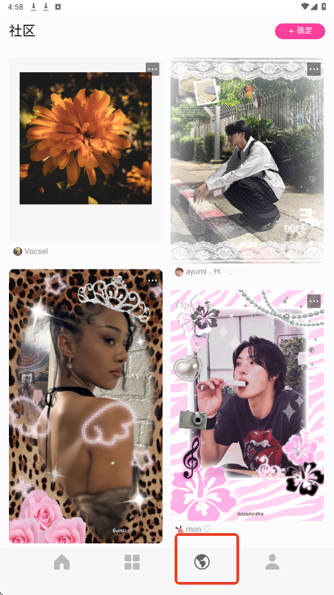 3.地球板块,可在社区内看别的用户设计的照片。大家一起交流