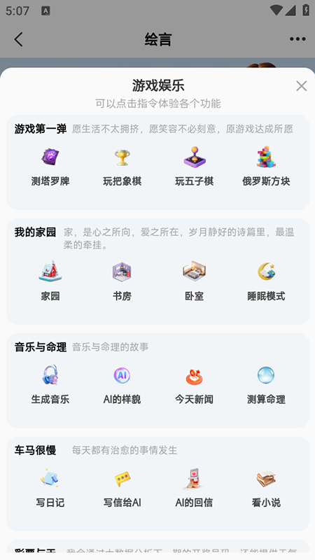 绘言AI是一款全能智能助手,集合百种功能于一身。它不仅能下棋、占卜、陪伴聊天,还能帮你搜索知识、处理文档、生成PPT、创作文案,更支持图片、视频、音乐的创作。通过插件扩展,AI可无限进化,满足学习、工作与生活娱乐的全方位需求。独特的训练与长久记忆功能,让它逐渐形成专属于你的性格与陪伴方式,成为既懂你又能助力创意的智慧伙伴。