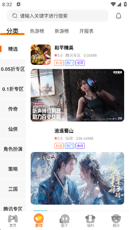 2、点击搜索框能够快速对游戏进行查找