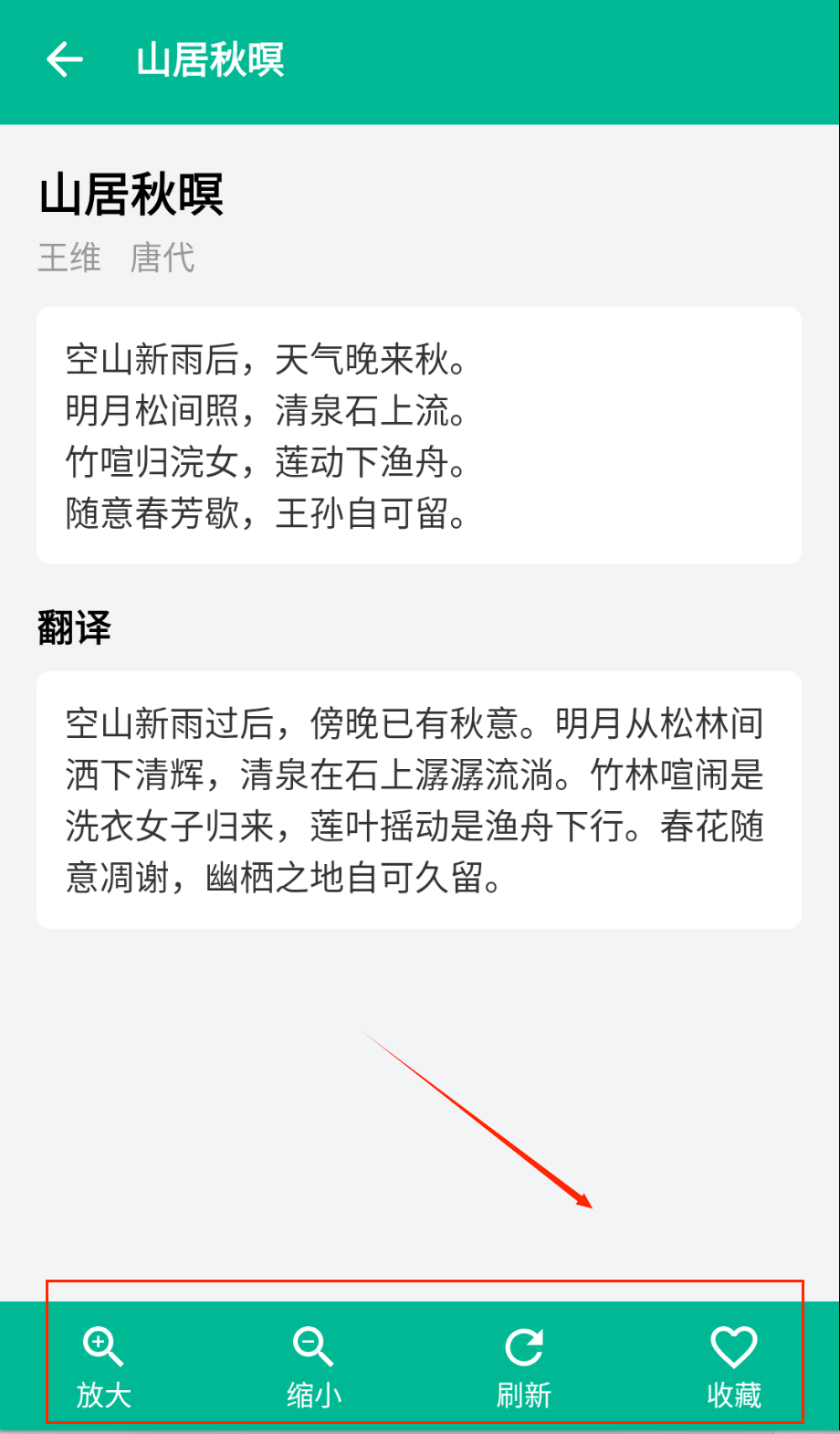 3、进入诗词详情页阅读完整内容,查看详细的注释和赏析。收藏功能保存喜爱的作品,建立个人诗词库随时重温。