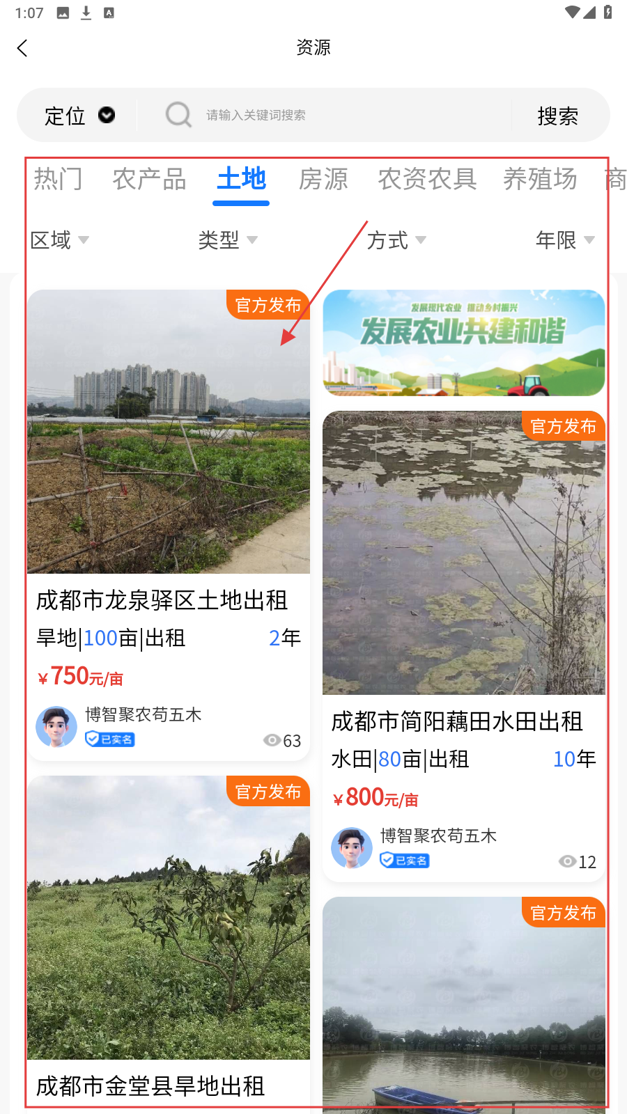 4、返回首页选【土地信息】,浏览土地出租等资源,了解地块详情。