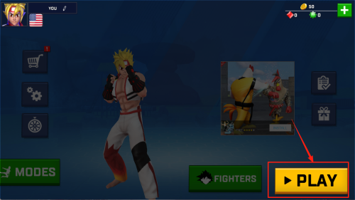 4、在主菜单点击“PLAY”,即可进入MODES与FIGHTERS开始对战。