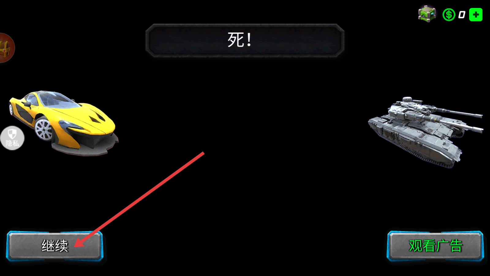 4、载具选择界面,点击左下角【继续】推进流程,无需看广告也能延续冒险。
