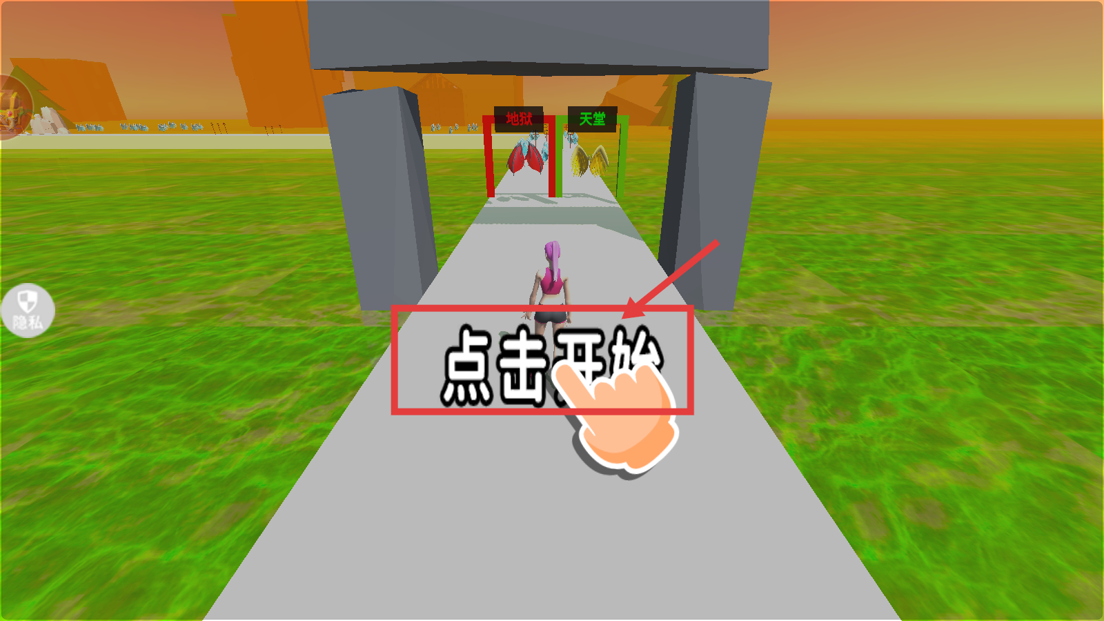 1、游戏初始,点击【点击开始】,开启后续【地狱】或【天堂】的路径抉择之旅。