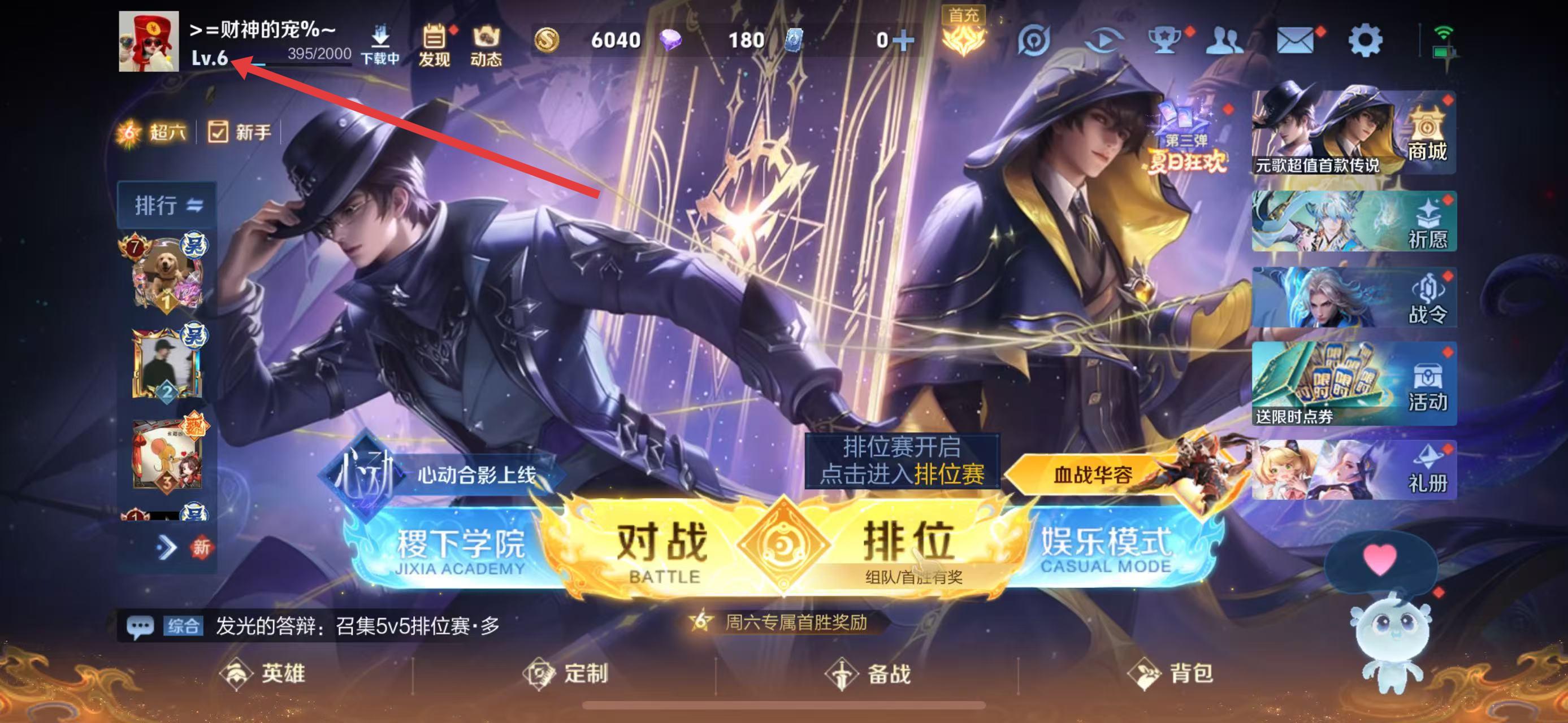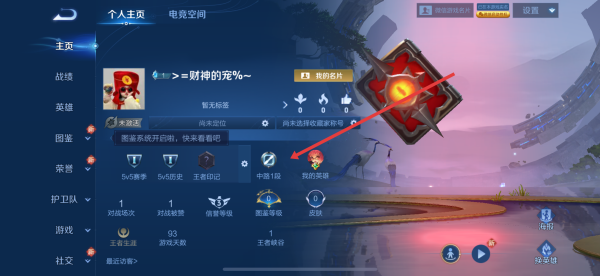 1、进入王者荣耀游戏主界面,点击左上角的头像,进入个人主页界面。