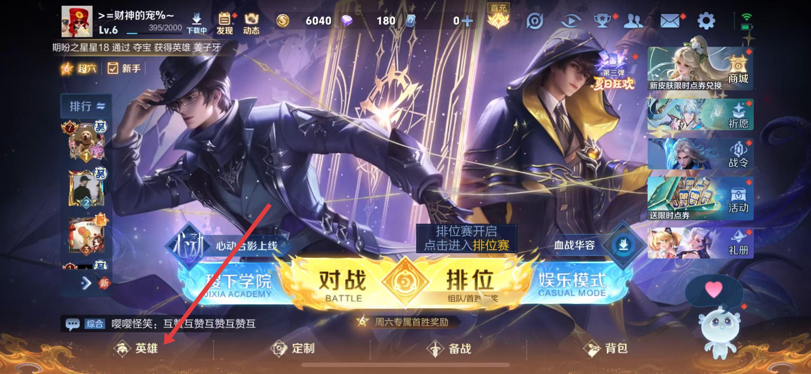 1、打开王者荣耀主界面,点击底部英雄按钮,进入英雄选择页面。