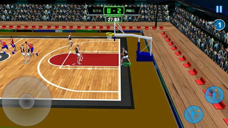 1、进入游戏后,先进入投篮基础教程,跟随指引调整虚拟摇杆控制球员站位,学习长按投篮键蓄力的基础操作,掌握近距离定点投篮的发力节奏。
