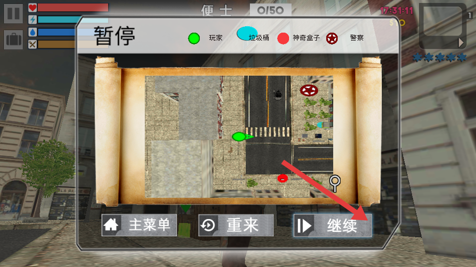 2、角色成长体系:随着游戏推进,玩家能通过完成任务、积累经验提升角色能力,如提升乞讨成功率的口才技能,提高翻找效率的拾荒技能,实现质量蜕变。