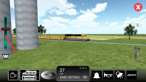 1、基础驾驶操作:通过屏幕虚拟按键控制火车的启动、加速、减速和紧急刹车,同时观察速度表、油量计等仪表盘数据,确保行驶状态稳定,避免超速或燃油不足。