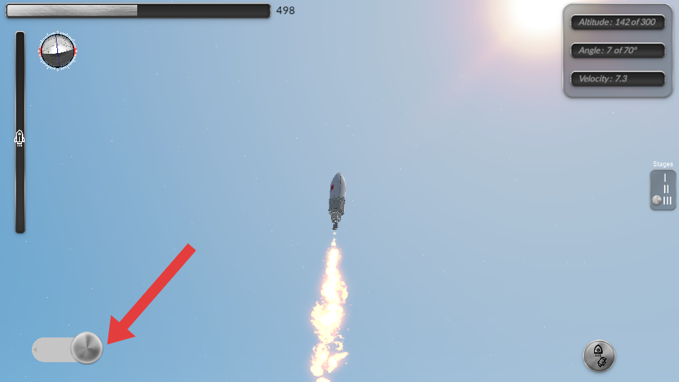 3、高度达到300、角度达到70°且速度稳定,顶部进度条走完,模拟发射任务成功,还原航天发射参数机制。