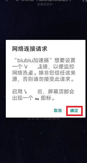 3、紧接着加速器就需要创建一个【ip】然后点击【确定】就可以完成加速器设置,启动手机中的游戏;