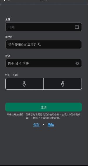 3、注册时第一栏为生日,第二栏为用户名(只包含数字、字母及下划线;3-20个字符内),第三栏为密码 (8个字符以上,不可与用户名相同)