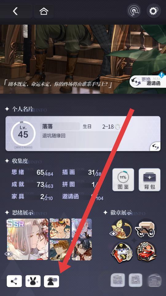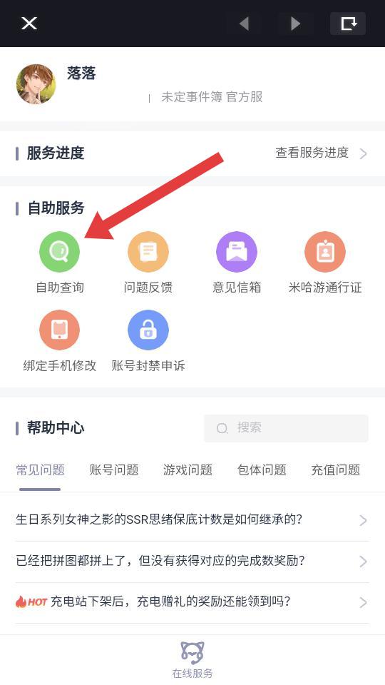 1、进入游戏点击头像,进入个人信息页面底部,点击小人形状的图标,可以进入自助服务的界面。
