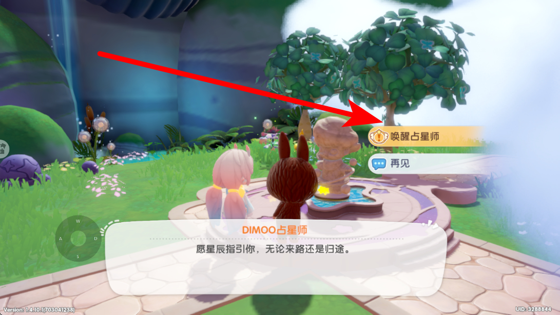3、拾取带星月之冠回到占星师雕像处,界面出现唤醒占星师选项,点击触发对话,聆听寄语,完成阶段任务,解锁后续内容。