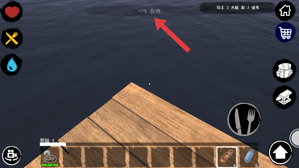 3、固定住所搭建:为摆脱漂泊状态,玩家需利用有限资源,在木筏基础上搭建稳固的庇护所,从遮阳棚到完整的居住空间,将木筏成功升级为安全住所。