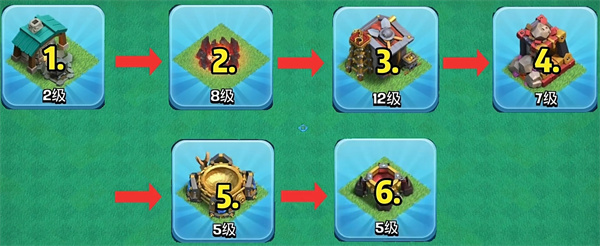每升一级大本营都会增加新的建筑,要做的就是把十本那些新增的城墙陷阱以及防御优先建造好,这样就会方便去摆阵型了。