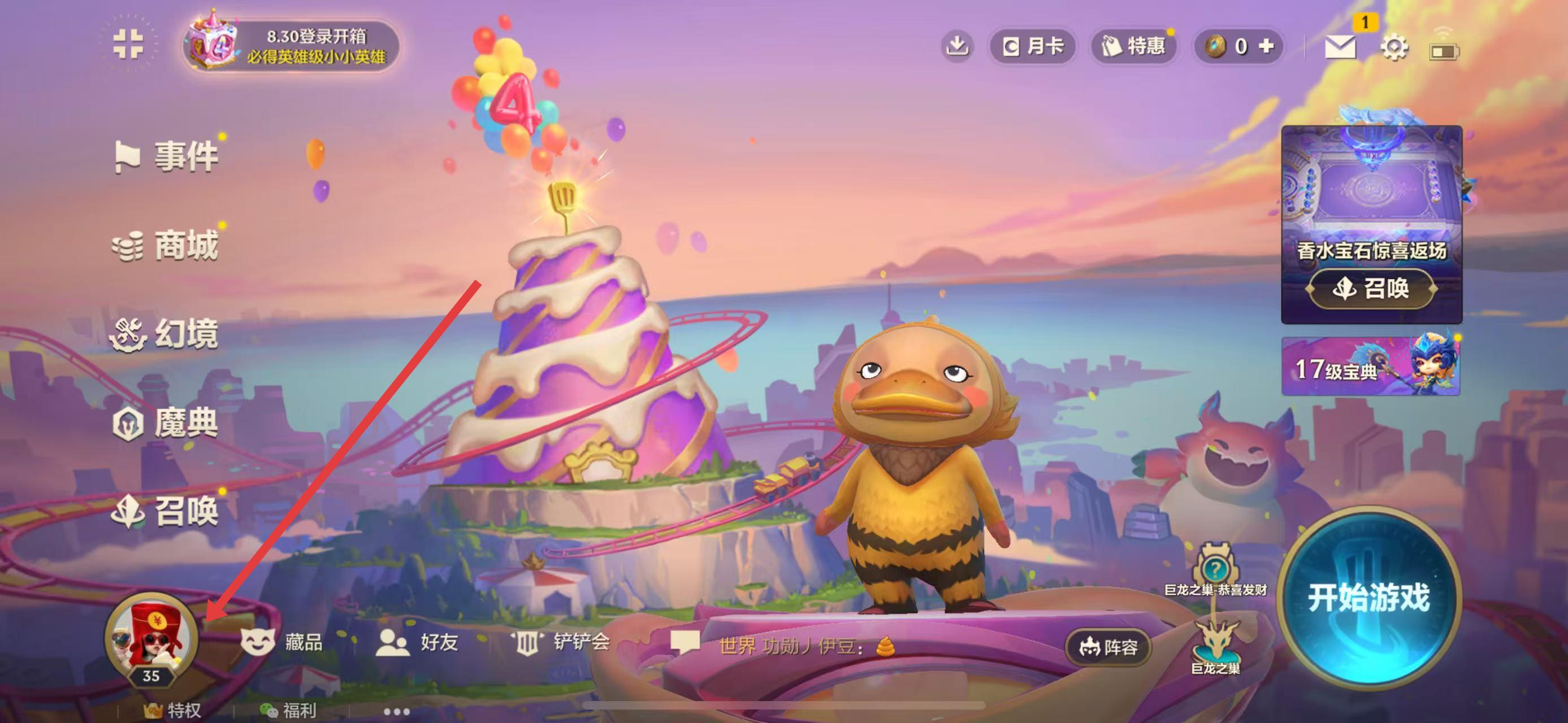 1、打开金铲铲之战游戏,进入主界面,点击左下角的个人头像,进入生涯界面。