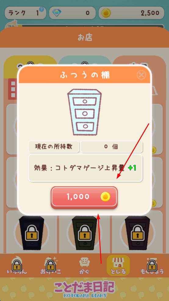 1、进入商店,消耗1000金币购买ふつうの棚,提升コトダマゲージ上升量,助力培育。