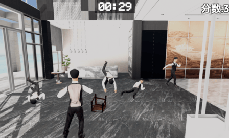 3、场景中的关卡会用各种各样的姿势来躲避椅子如芭蕾转圈圈、劈叉、闪躲、突然趴下。
