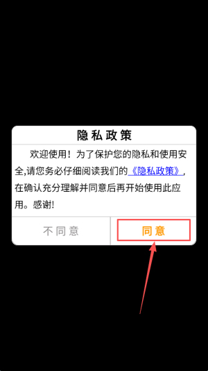 1、点击“同意”按钮,接受隐私政策,开始游戏旅程。