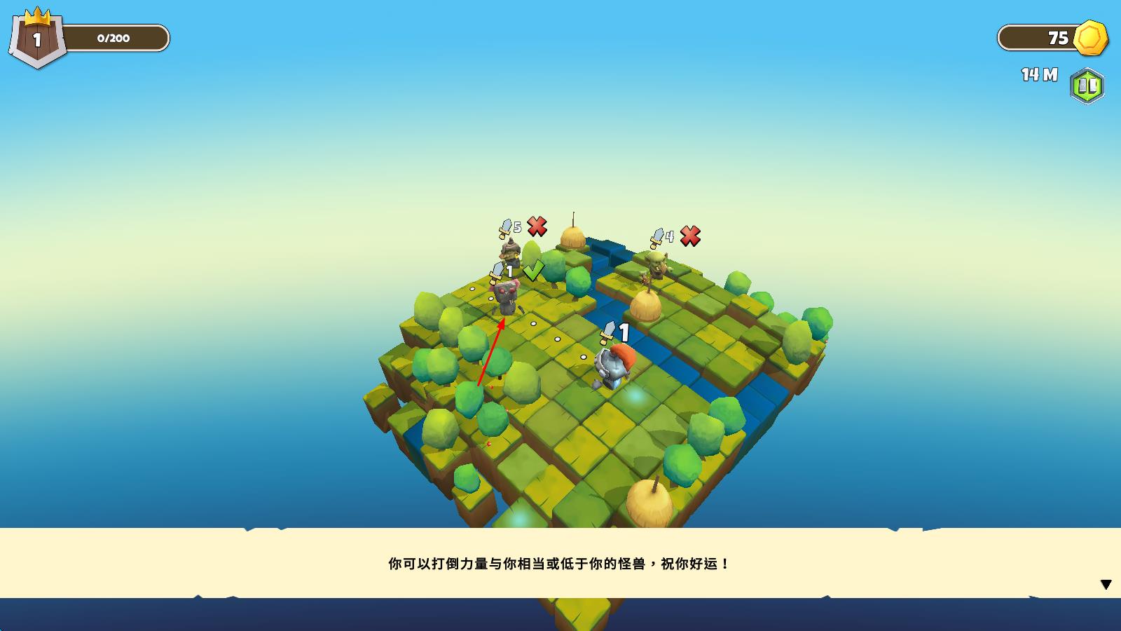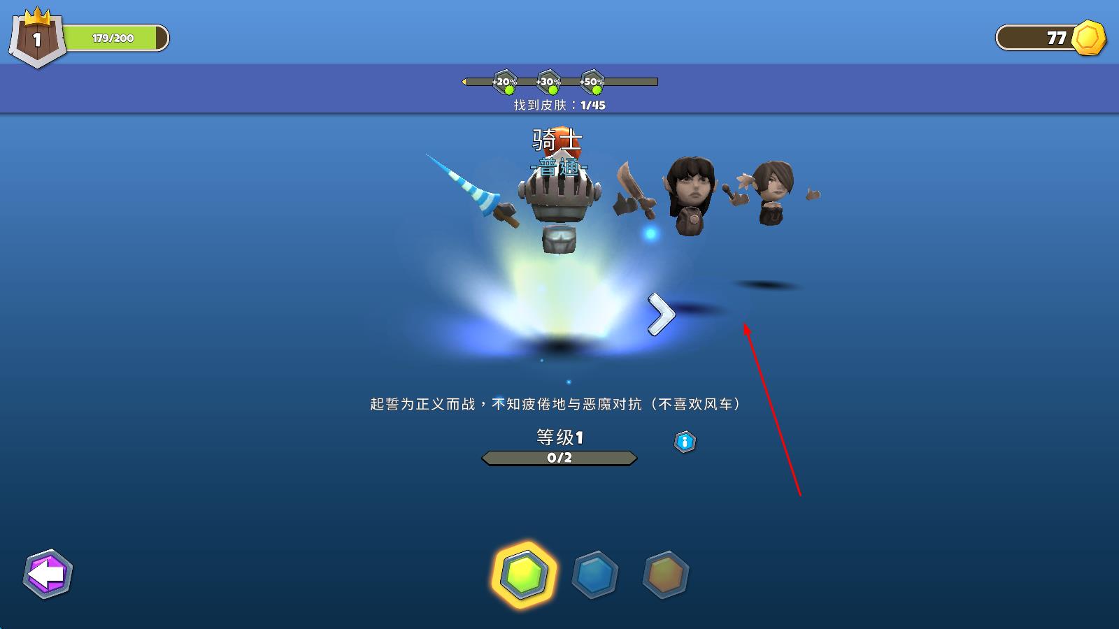1、进入贫穷骑士后,先选择心仪的英雄角色,操控其进入初始关卡,通过点击屏幕释放基础技能,尝试击杀首波匹配等级的怪物。