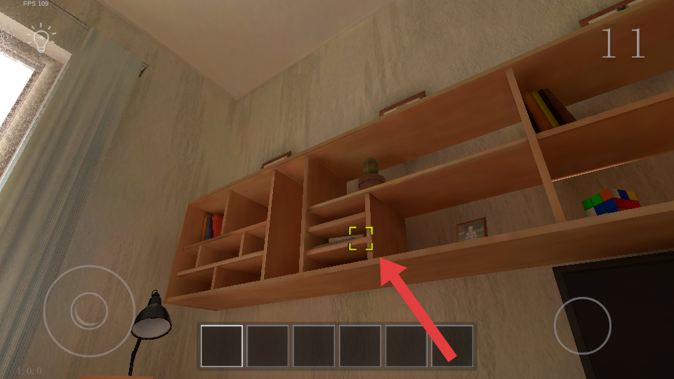 2、留意书架细节,魔方、相框等特殊物品别放过,互动来点击收集,用于后续走廊木门的解谜。