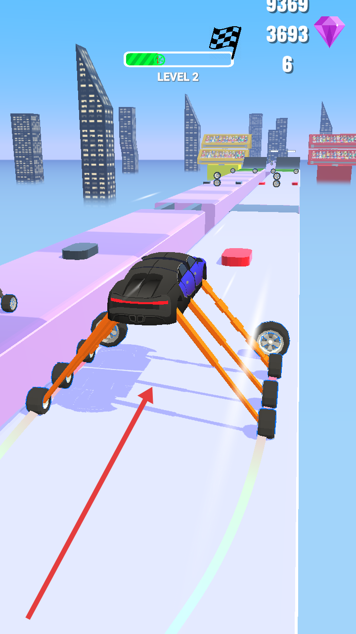 1、变形适配玩法:跑酷中提前观察前方赛道,预判障碍类型选变形方式,连续窄沟壑保持车轮伸长,交替窄道与沟壑快速切换缩短和伸长,避免频繁出现失误。