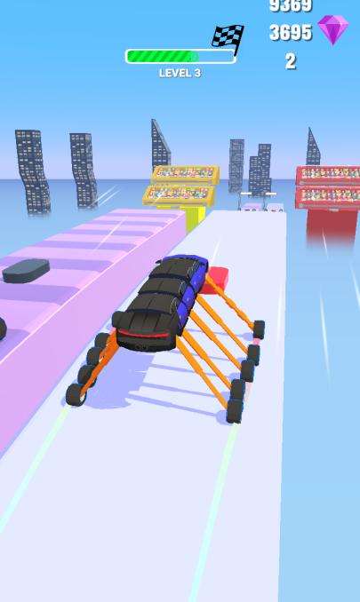 1、变形机制创新:区别于传统赛车跑酷,核心亮点在于赛车的灵活变形,车轮伸缩可调整离地高度,车身变长能增加跨越距离,两种变形可组合使用,操作简单却充满策略性。