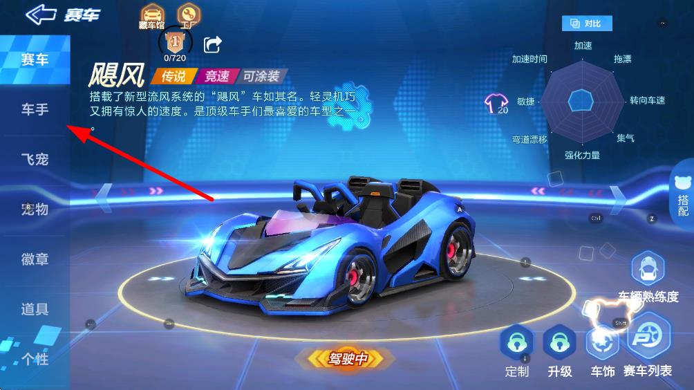 2、在仓库页面左侧导航栏里,点击车手选项,浏览已拥有的车手角色。