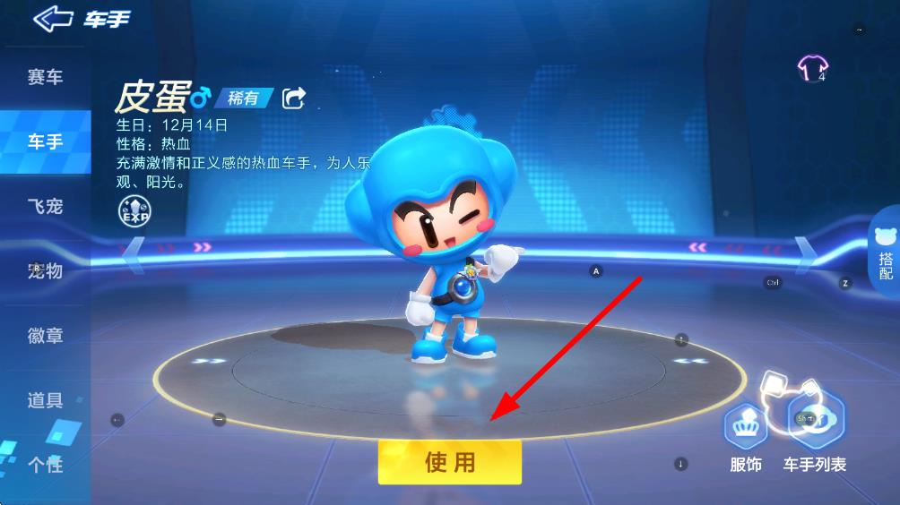 3、选择你想要使用的车手,不同车手性别外观不同,点击该车手下方的使用按钮,即可在游戏中切换车手的性别。