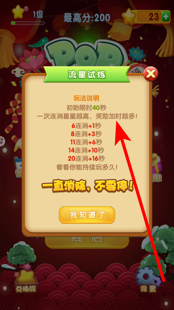 2、流星试炼游玩:选择流星试炼模式,界面会显示倒计时,需在规定时间内快速点击消除相同颜色星星,倒计时结束前消除数量越多,最终得分越高,考验反应。