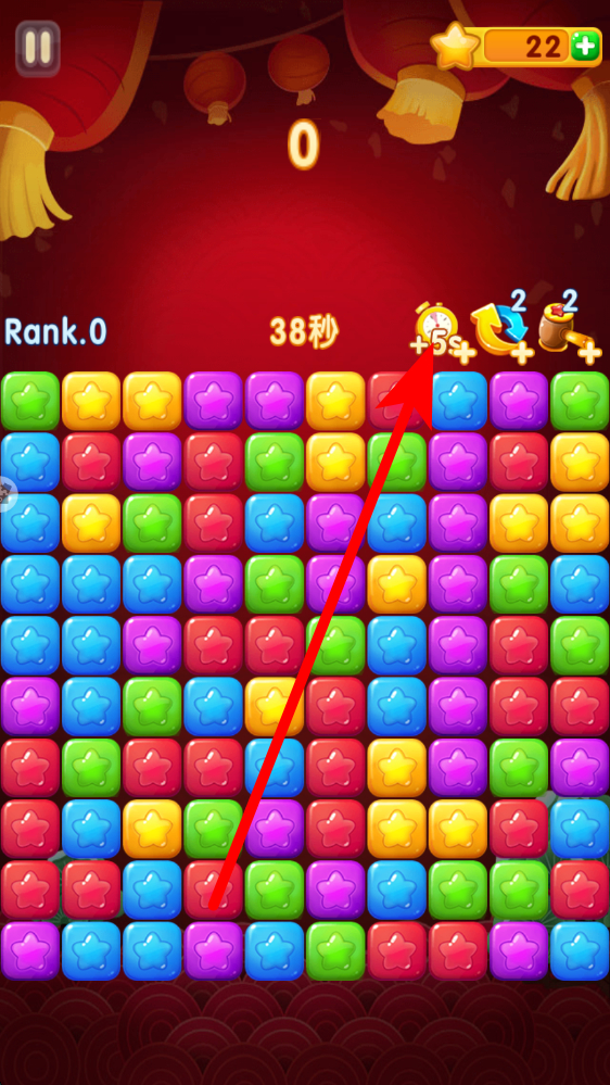 2、连消策略优先锁定同色星星密集区域,一次性消除多组,触发高连消次数11连消加6秒,通过高效连消延长游戏时间,提升得分效率。