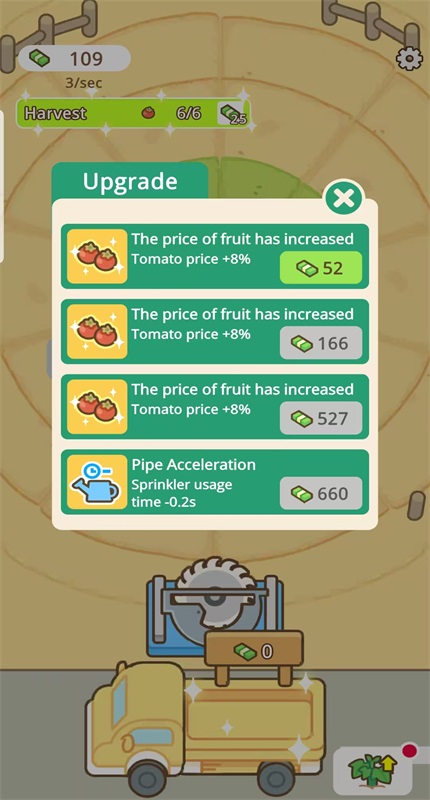 5.丰收成熟后的果实可以进行贩卖换取钞票,然后加大我们的农田面积。