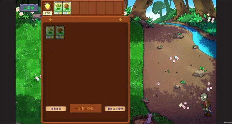 3、刚开始只有向日葵和豌豆射手,随着玩家的关卡解锁后续可以开放更多植物;