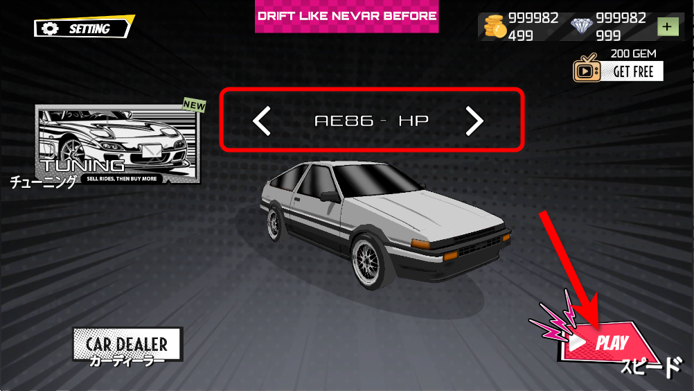 2.选择一辆喜欢的车,点击PLAY继续。