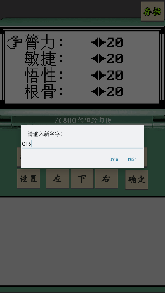 3.选择好角色后还需要为自己起一个新名字,起好名字后玩家们还可以自行决定四种属性的点数,体力,敏捷,悟性,根骨,每一个点数最高就是20点。