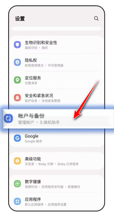 2.选择【帐户与备份】之后点击【从旧设备导入数据】