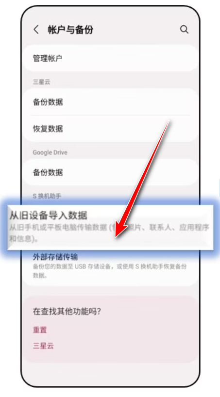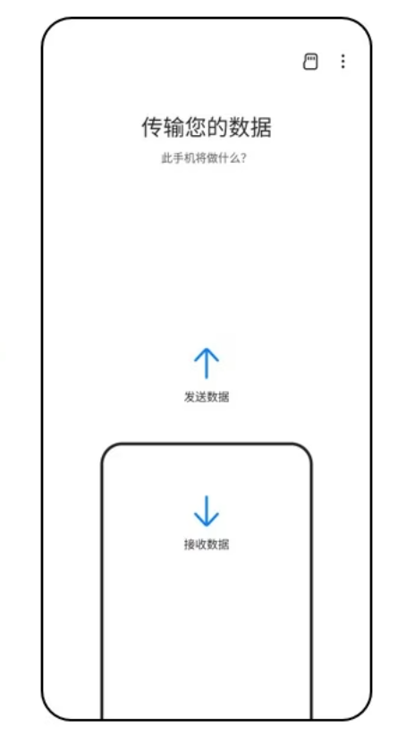 在新手机上打开设置 >>账户与备份 >>从旧设备倒入数据 >>接收数据