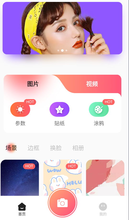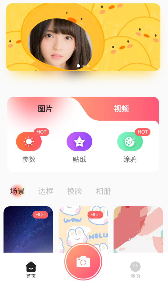 1、打开颜趣相机app,进入首页,点击图片下方的参数