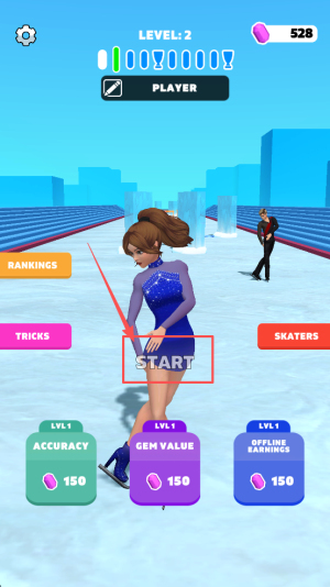 1、开启滑冰之旅:进入游戏熟悉操作,了解滑冰控制方式与关卡规则,明确闯关目标,开启花式滑冰挑战。